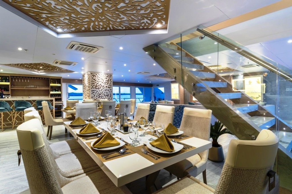 Deze luxe catamaran werd in 2019 gebouwd en is speciaal ontwikkeld voor het varen in de Galapagos eilanden met extra aandacht voor de stabiliteit. Het schip is zorgvuldig ingericht met veel aandacht voor design en dat vertaalt zich in mooie grote heldere gemeenschappelijke ruimtes en comfortabele luxueuze cabines. Alle cabines beschikken over een eigen privé balkon, airconditioning en een badkamer met warm water. Daarnaast beschikt de Elite over een mooie eetruimte, een lounge, een zonnedek en een sky dek met al fresco eetruimte en een jacuzzi.