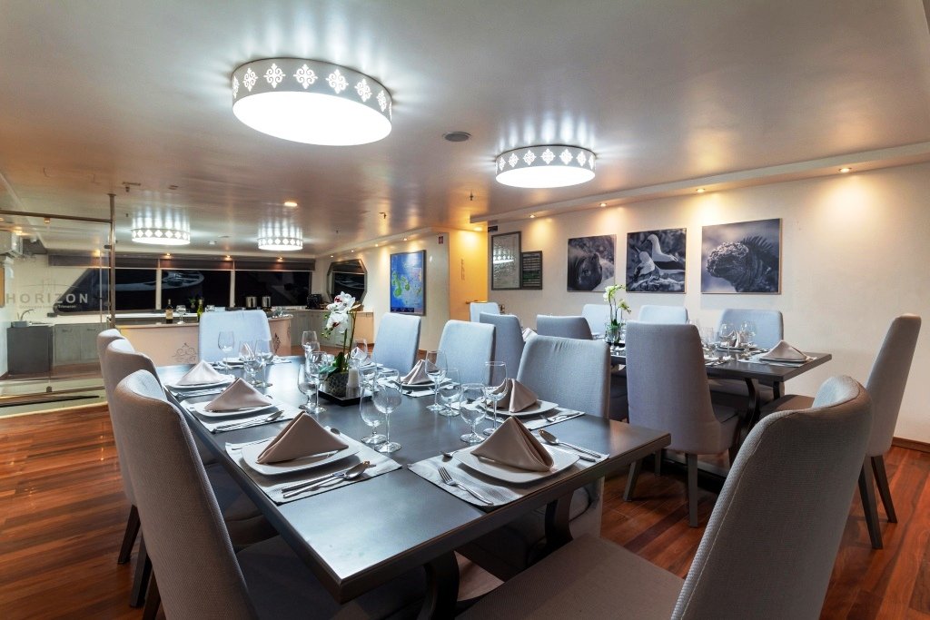 De Horizon is de enige luxe-trimaran in de Galapagos-archipel en biedt een comfortabele hoogwaardige ervaring aan boord met een subtiel vleugje elegantie. De 8 ruime hutten bieden plaats aan maximaal 16 passagiers. Elke hut heeft een privébalkon, panoramische ramen en aanpasbare bedden. Dankzij de hoogwaardige service en de ervaren gidsen kan je de eilanden in alle exclusiviteit en luxe ontdekken op de 4-, 5- en 8-daagse routes.